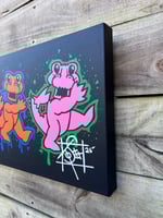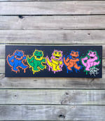 This is my nod to the iconic Grateful Dead dancing bears, which were another perfect way for me to reimagine a gator into something that’s super recognizable by many. I originally just did the one single gator as a sticker , however I now have all 5 doing the iconic dance in full swing in this design. I added the overspray outline as a vibrant pop of color to really bring these gators to life & bring a fun vibe to the piece.