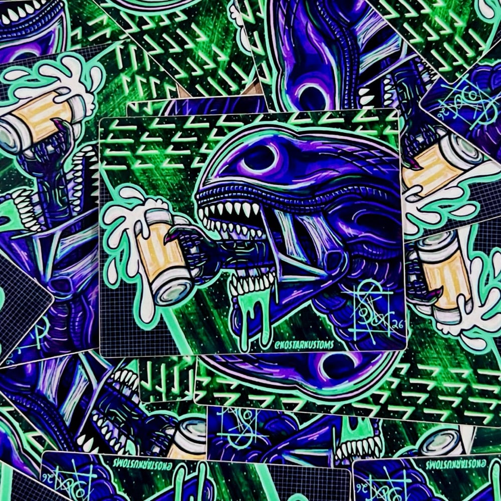Creating a beer slinging xenophomorph was a blast and the reactions & kind words people shared with me about the piece were great to hear. Despite being one of the most unexpected designs at the event, festival goers were very much here for it and the fun vibes it gave. Glad to have this version available for you to take home, thanks for supporting local 🙏